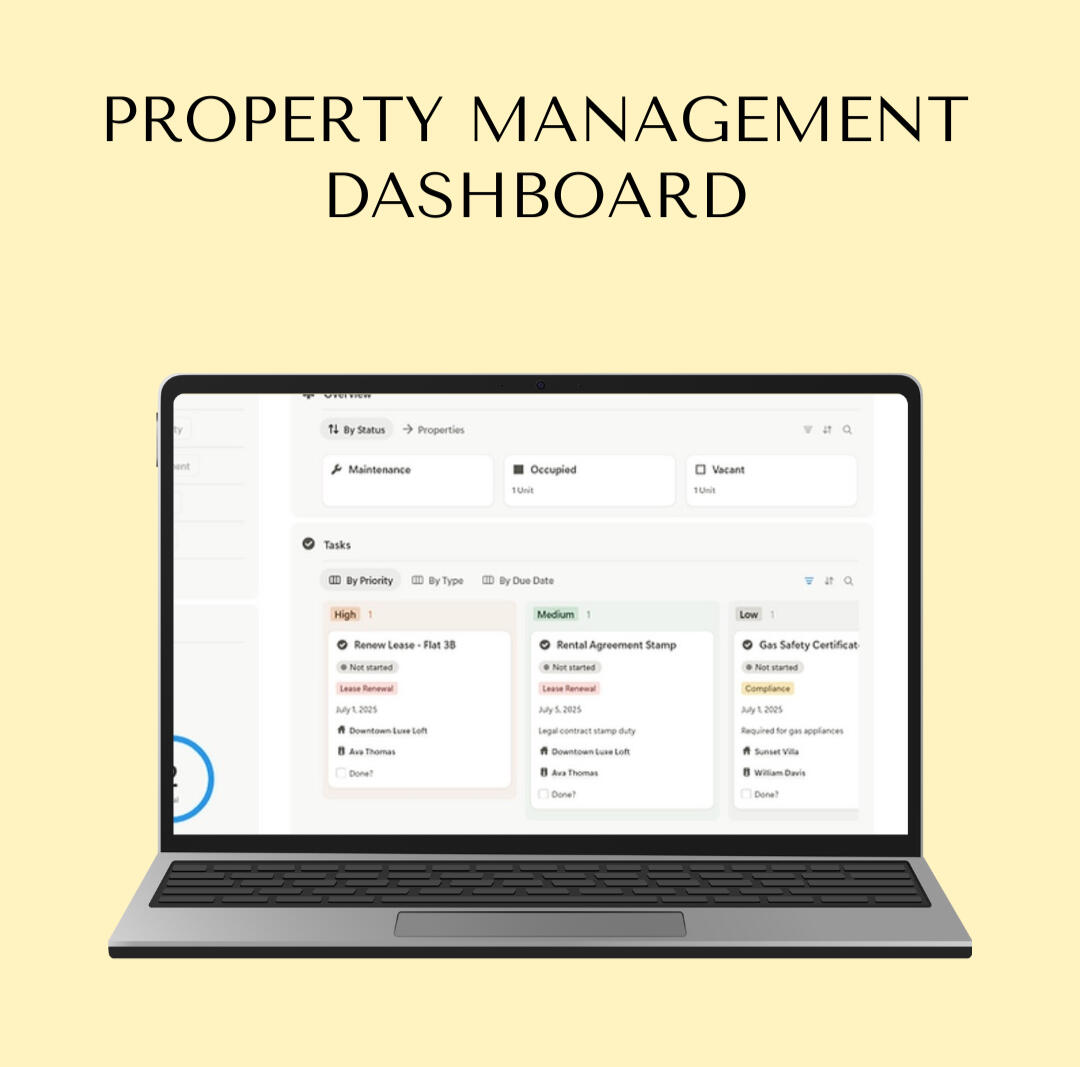 Manage tenants, rent, compliance, and maintenance — all in one simple Notion dashboard.